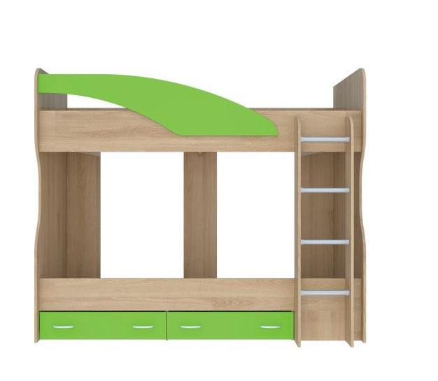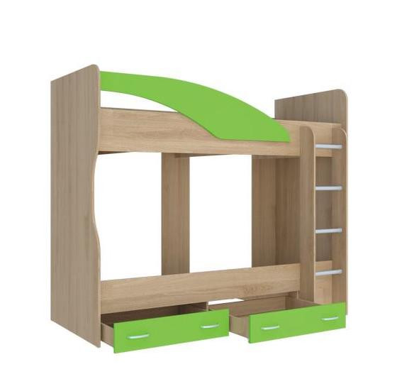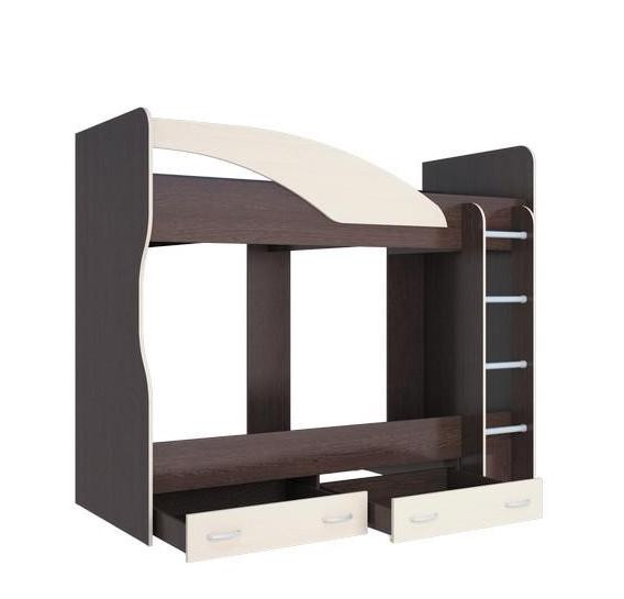 - Кровать оснащена лестницей шириной 332 мм по краям деталей из ЛДСП