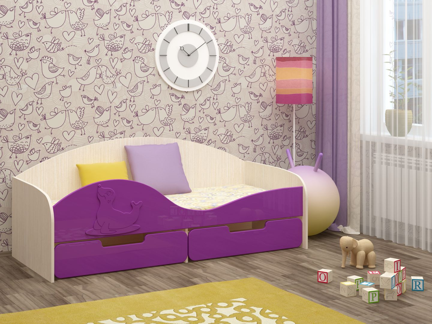 Кровать "Юнга-8" МДФ - превосходный выбор для детской комнаты вашего ребенка. Кровать оснащена бортиком с накладкой в виде милого тюленя, который защищает вашего ребенка от возможного падения во сне. Снизу кроватки находятся два выдвижных ящика, в которых удобно хранить детские игрушки, одежду или белье. Эта оригинальная кроватка поразит Вас своим милым дизайном.