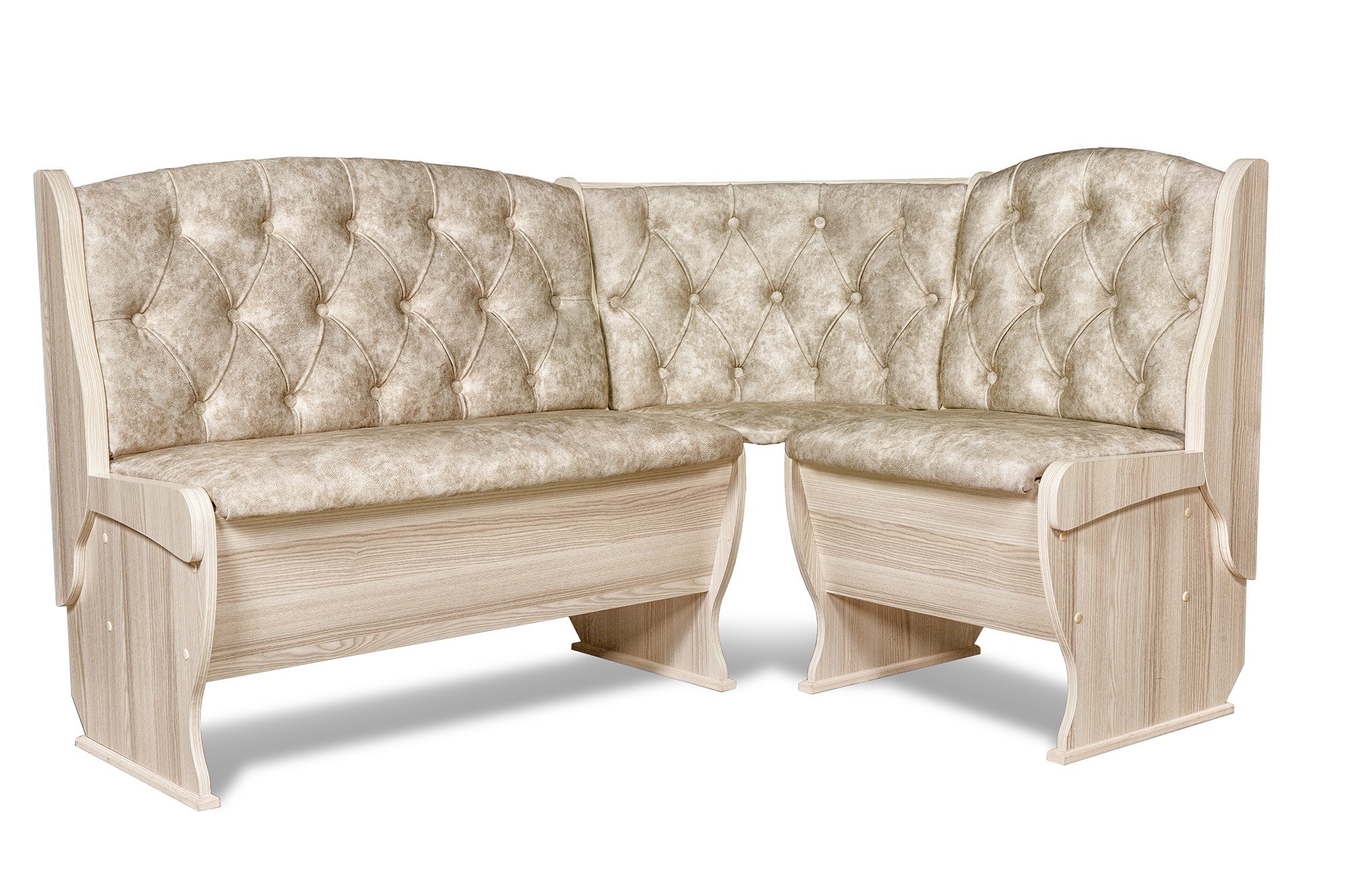 Особенности уголка: Замечательный вариант организации комфортной обеденной зоны на кухне без лишних затрат. Большой выбор обивочных материалов позволит подобрать лучший дизайн данной меблировки, который подойдет к интерьеру и будет радовать каждый день. Кухонный угловой диван с 2 ящиками, каркас ЛДСП обработан кромкой ПВХ. Термостойкая пластиковая столешница. Угол собирается как в правом, так и в левом исполнении.