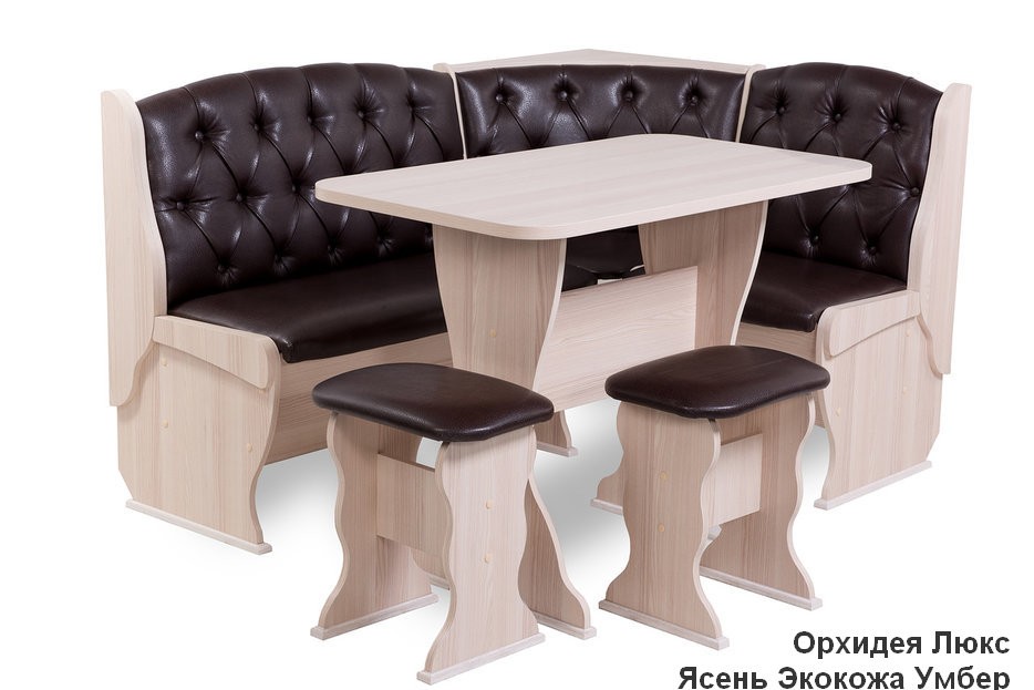 —Кухонный уголок Орхидея Люкс/Разные Цвета (Диван + Стол + Табуреты)